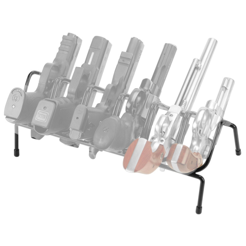 The Lockdown® Handgun Racks are vinyl coated metal handgun racks that are extremely handy for use in your gun vault or at the shooting range to provide a safe place to rest your handguns.