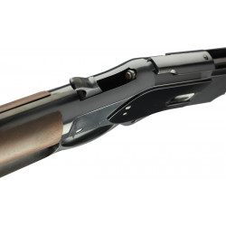 The features are all there. Walnut straight grip stock with a satin oil finish that’s velvet smooth to the touch. Classic rifle style forearm with blued steel cap for the timeless look and feel of the original Model 73. Blued steel crescent buttplate slips into your shoulder for a solid hold. Round 20" barrel with a full-length magazine. Tube holds 10 rounds of 357 Magnum or 11 rounds of 38 Special ammunition. Semi-buckhorn rear sights with Marble Arms® Gold Bead front sight gets you on target quickly. Steel loading gate for smoother loading. Receiver rear tang is drilled and tapped for optional tang-mounted rear sight for a more precise sight picture (sight not included).