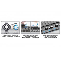 •42 Keymod Compatible Slots on 7 Keymod Compatible Slot Tracks for Mounting Keymod Compatible Rails and Accessories with the Most Flexibility in Diverse Applications