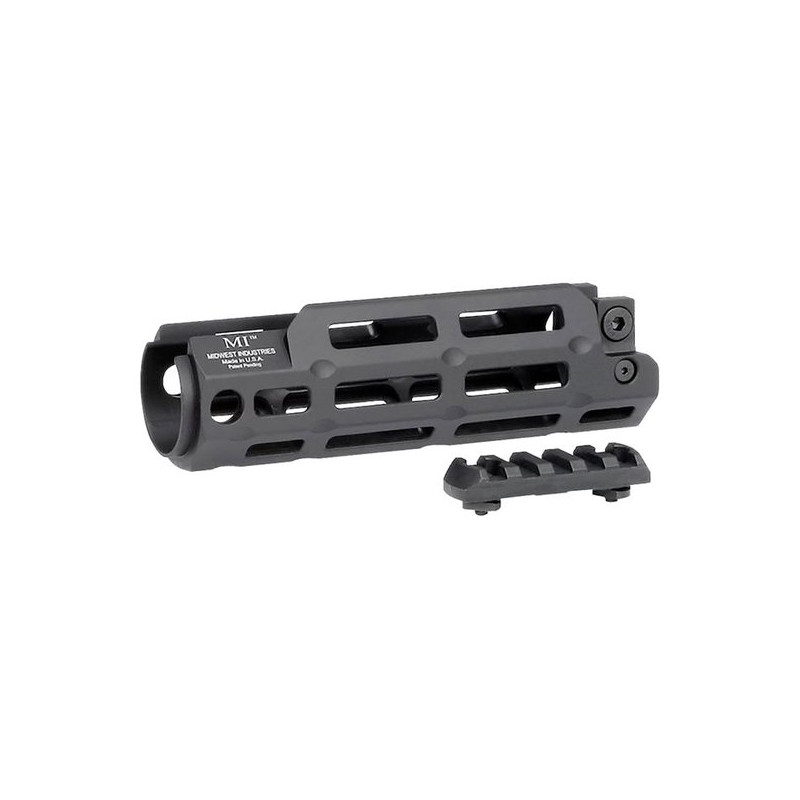 Need an updated way to mount some accessories to your HK MP5K and Clones? Midwest Industries has you covered! Designed for HK MP5-A2, MP5-F, and AA89 Variants. Professional grade one piece design Simple installation, includes all tools Extremely lightweight design, weighs only 4.6 oz with hardware Slim 1.6 inch diameter for a great feel Features 12 full and 8 half M-LOK slots Shortened to allow for use of front sling attachments One five slot M-LOK(TM) compatible rail included Features two anti-rotation QD sling swivel sockets Constructed of 6061 aluminum, hard coat anodized for a lifetime of service 100% Made in the U.S.A., 922R Compliant MI Lifetime Warranty Patent pending