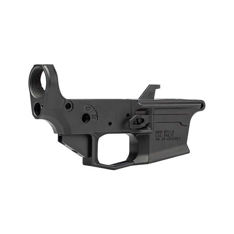 EPC-9 Lower Receiver Features: Threaded bolt catch pin for easy installation Integrated enlarged trigger guard to remove any risk of breaking off trigger guard tabs, and provide an overall more rugged platform to build on