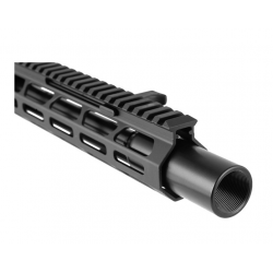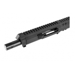 Mit seiner Picatinny-Oberschiene in voller Länge und dem M-LOK-kompatiblen Handschutz bietet der Foxtrot Mike 9mm Upper viel Platz für die Montage von Optik und anderem Zubehör. Ein einzigartiger Verriegelungsverbinder zwischen der oberen Aufnahme und dem Handschutz stellt sicher, dass sich die Laufmutter mit der Zeit nicht löst.