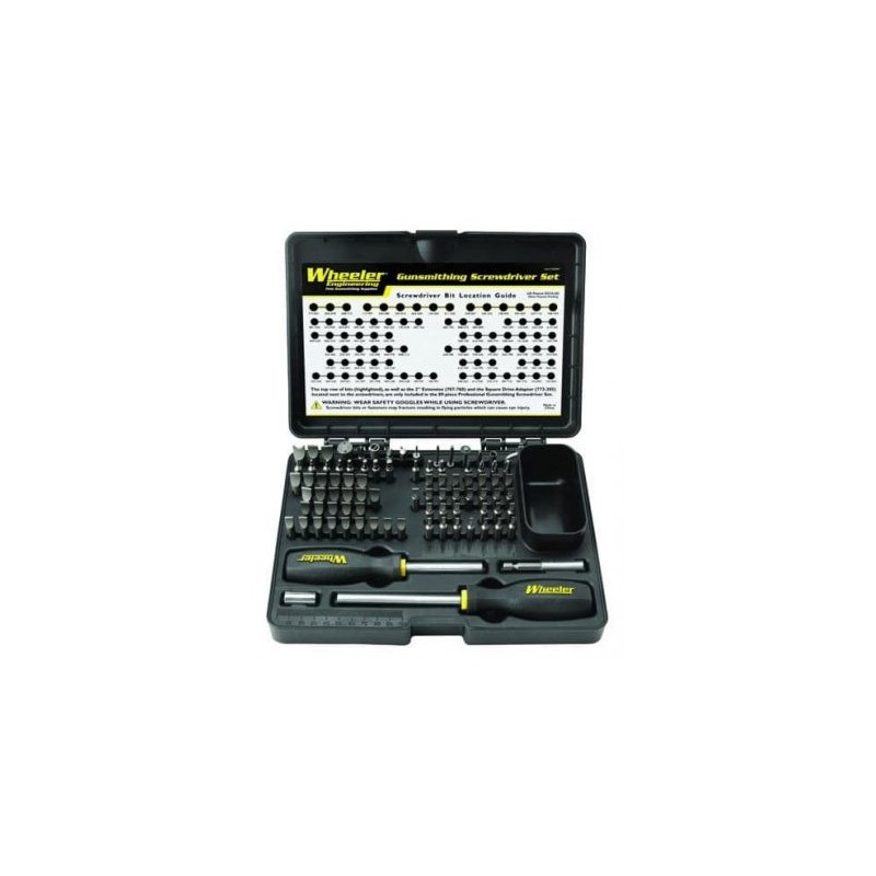 Wheeler’s® Deluxe Gunsmithing Screwdriver Set is the kit that belongs on every gunsmithing bench – the well thought-out bit selection will put an end to burred, buggered, busted up screw slots on any gun that comes your way. The bits make up the heart of any screwdriver set, and Wheeler’s are the finest available. They’re made from S2 tool steel and hardened to 56-58 Rockwell “C.” Unlike other screwdriver suppliers,Wheeler’s engineers measured the screws on over one hundred modern and antique firearms to make sure that we offered bits for every situation.