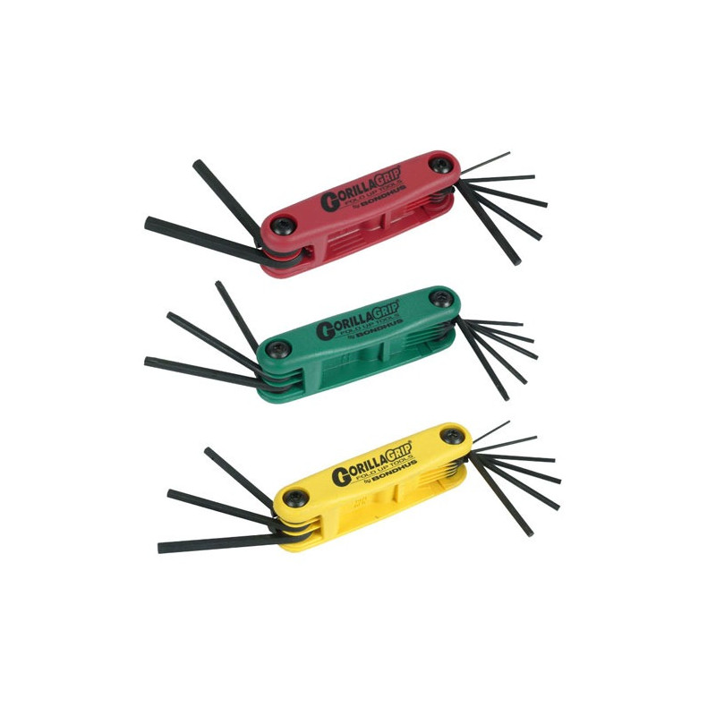 These fold-up allen key sets by Bondhus feature their very comfortable Gorilla Grip handles. The allen keys fold up inside the handle so they are completely out of the way. Kit includes: TL10 Standard Bit .050 inch thru 3/16"" TL08 Metric Bit 1.5mm thru 6mm TL09 Torx Bit T6 thru T25