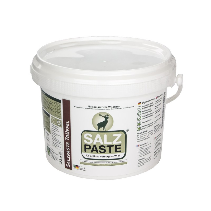 Durch die handliche Verpackung können Sie die Salzpaste bei jedem Reviergang dabei haben. Einfach gewünschte Salzmenge auf einem Baumstumpf oder Bruchholz aufstreichen und aushärten lassen.
