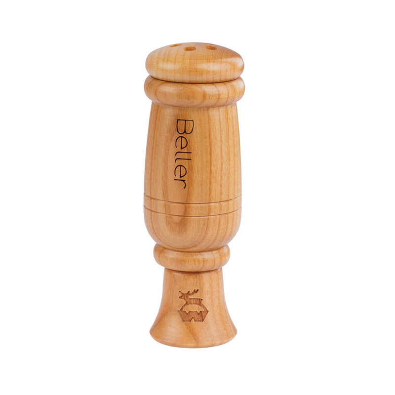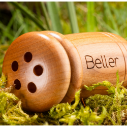 Der Fuchsbeller eignet sich hervorragend für die Jungfuchsbejagung, da Sie eine Fähe imitieren können, welche gerade Futter für die Jungfüchse bringt. Im Herbst-Winter ist er für die Bejagung von Altfüchsen bestens geeignet, da Sie den Fuchs anbellen können. Erwiedern Sie das Bellen des Fuchses mit dem gleichen Ton, wird der Fuchs immer dichter kommen. Sie können ebenfalls das Klagen eines Junghasen mit diesem Locker nachahmen. Aus heimischer Kirsche wird dieser Locker gefertigt.