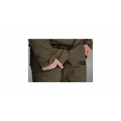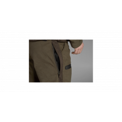 Unsere Climate Serie bietet den ultimativen Schutz an kalten Herbst- und Wintertagen. Die Climate Hybrid Hose ist eine durchdachte Hose, die mit ihren zahlreichen Details und Technologien den Grundstein für eine Ansitzjagd legt, bei der Sie nicht nur stillsitzen, sondern durchaus auch aktiv sein können. Die Hose ist mit der bahnbrechenden ThinsulateTM-Technologie ausgestattet, einer isolierenden Membran aus feinen Mikrofasern, die gemeinsam warme Luftmoleküle speichern. Wenn der Körper warm wird, speichert Thinsulate effektiv die Wärme, während Feuchtigkeit durch die äußere Membran verdampfen kann. Mit ihrem einzigartigen Design mit getapten Nähten, dem in vier Schichten miteinander verbundenen Fleece und einer vierschichtigen wind- und wasserdichten SEETEX®-Membran schützt diese Hose garantiert vor Wind und Regen. Die innerste Schicht der Hose besteht größtenteils aus einem einschichtigen Netzmaterial, das die Feuchtigkeit von den Beinen wegleitet und für eine hohe Atmungsaktivität sorgt. Das Netzmaterial bildet außerdem die äußerste Schicht der Hose an den Seiten und in den Kniekehlen – für optimale Atmungsaktivität bei hohem Aktivitätsgrad. Die Hose ist aus einem extrem flexiblen Material gefertigt, das für maximalen Komfort und optimale Flexibilität sorgt. Darüber hinaus bietet die Hose eine sogenannte „Body Mapping“-Regulierung, mit der genau die Stellen an den Beinen warm gehalten werden, die Wärme benötigen, während Bereiche, in denen es eher auf Abkühlung und Belüftung ankommt, mit weniger Wärme versorgt werden. Ganze fünf Taschen bieten ausreichend Platz: eine Gesäßtasche sowie zwei geschlossene und zwei offene Fronttaschen. Sämtliche Taschen sind mit einem durchdachten Reißverschluss ausgestattet: Wie ein Magnet bleibt er immer in seiner Position. Im geschlossenen Zustand ist der Reißverschluss hinter einem kleinen Stück Stoff verborgen, während das Ende freiliegt. Eine sehr anwenderfreundliche Lösung! Außerdem sind die Zähne des Reißverschlusses hinter einem Tape verborgen, sodass der Reißverschluss komplett wasserdicht ist. Mit der Climate Hybrid Hose profitieren Sie von einem warmen Begleiter, insbesondere bei der Ansitzjagd, wo es vor allem darauf ankommt, warm und trocken zu bleiben – unabhängig davon, ob Sie stillsitzen oder sich bewegen.