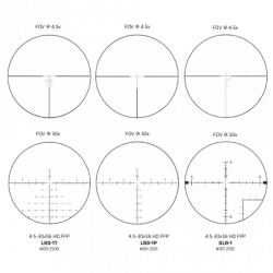 Das Absehen LRD-1T das bei dem Zielfernrohr 4.5-30×56 erhältlich ist, ist einzigartig und für ehrgeizige Schützen bestimmt. Es ist in Milliradian (MIL) gradiert und somit einfach in metrische Einheiten umzurechnen (1 MIL = 10 cm auf 100 m). Es korrespondiert mit den Klicks des Zielfernrohres – 1 Klick entspricht 0.1 MIL (1 cm).