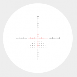 Eine Reihe von Kreuzen, die in den unteren Teil des Fadenkreuzes eingraviert sind, sorgen für zusätzliche Zielpunkte für den Luftwiderstand und ermöglichen eine einfache Methode zum schnellen Zählen des Mil-Abstands, mit dem Sie zielen. Die äußeren Pfosten sind in Abstände von einem halben Millimeter und einen Abstand von 0,2 Mil unterteilt und können daher zur Belichtungsreihe und Entfernungsmessung verwendet werden.