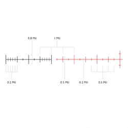 Accurate mil spacing on 20× magnification. With half mil spaced markings out beyond 5 mil in all directions, the 20× Half Mil is a versatile reticle that provides aim points no matter how extreme the conditions.