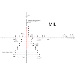 Die Größe des Ziels bzw. die Entfernung zum Ziel lässt sich bei Kenntnis einer Größe durch das MRAD-Absehen hervorragend ermitteln. Klickverstellung, Absehen und Parallaxenverstellung sind dafür im Metrischen System gehalten.